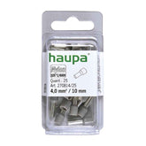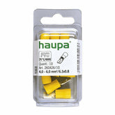 Made of electrolytic copper, galvanically tin-plated. Plastic collar of PP. Has heat resistance up to 105°C