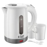 Russell Hobbs 850ml Travel Kettle with 2 Cups + Spoons Small and lightweight - the travel compact kettle is the perfect size for cramming it into an already busy backpack or case. Include two cups and spoons so you have all the essentials to...