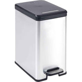 Elegant and contemporary metal effect finish; a design that leaves no fingerprints and will not rust. Thanks to its shape, the waste container easily fits into narrow spaces and can be used in small-sized households. 25l capacity with pedal touch opening_x000D_ _x000D_ Dimensions -...