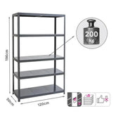Clipsable Full Metal Shelving H196Xw120Xd50 Cm; 5 Levels, Capacity 150 Kg Each Level. Epoxy Black