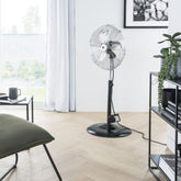 This retro fan will perfectly integrate into your home decor and make you feel comfortable during hot summer days Unit size: 50cm x 50cm x 130cm, Power rating: 120w, black, 3 speeds oscillation, class I