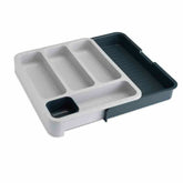 Organise messy cutlery drawers with this practical and smart storage solution. The two halves of the tray can be finely adjusted to fit a variety of drawer sizes and lock securely together once in place. The design provides four deep-sided compartments for holding cutlery,...