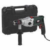 This 1050 W impact drill drills holes up to 16mm in concrete, 16mm in steel, and 40mm in wood. The 13mm keyless Peacock chuck has a locking function that makes changing drills and bits easy. _x000D_ The machine is also equipped with a metal...