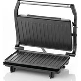 Two non-stick cooking plates For easy cleaning. Insulated handles with locking system Operating and temperature indicator light Automatic temperature regulation Vertical storage possible Cable rewind 220-240v ~ 50/60hz 750w Dimensions: 240 x 210 x 85mm Gs safety tested