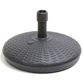 Base for parasols in resin with rattan effect. Capacity: 30 litres Product measurements Height: 35.0cm Length: 58.0cm Width: 58.0cm Weight: 1.600Kg