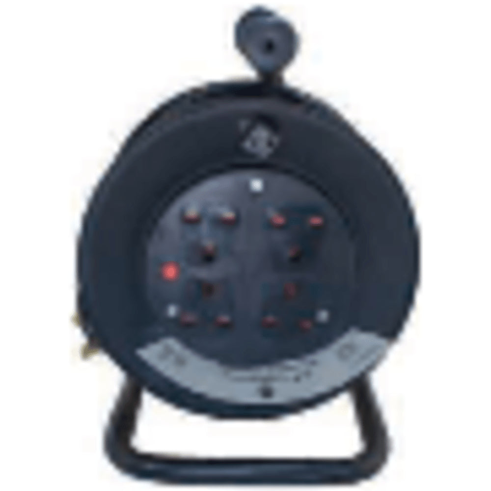 Cable reel extension sockets allow you to power devices from a much greater distance. The cable is supplied on a reel with integrated sockets. The use of a reel makes it easier to store and transport the extension lead.