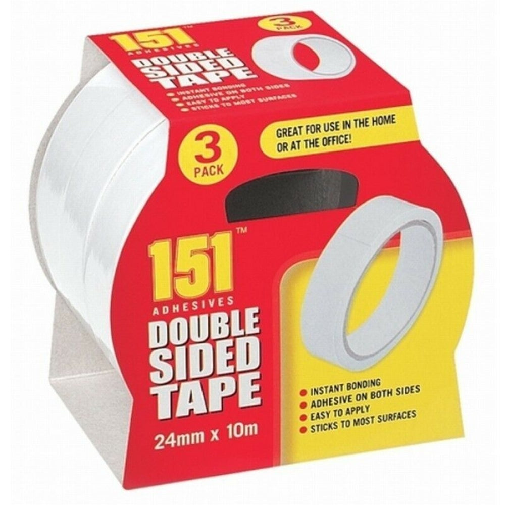 Secure items with ease using 151 Double-Sided Tape. This 24mm tape comes in a 10m roll, providing a convenient and reliable solution for various applications. Ideal for crafts, home decor, and more, this double-sided tape offers strong adhesion for your sticking needs.