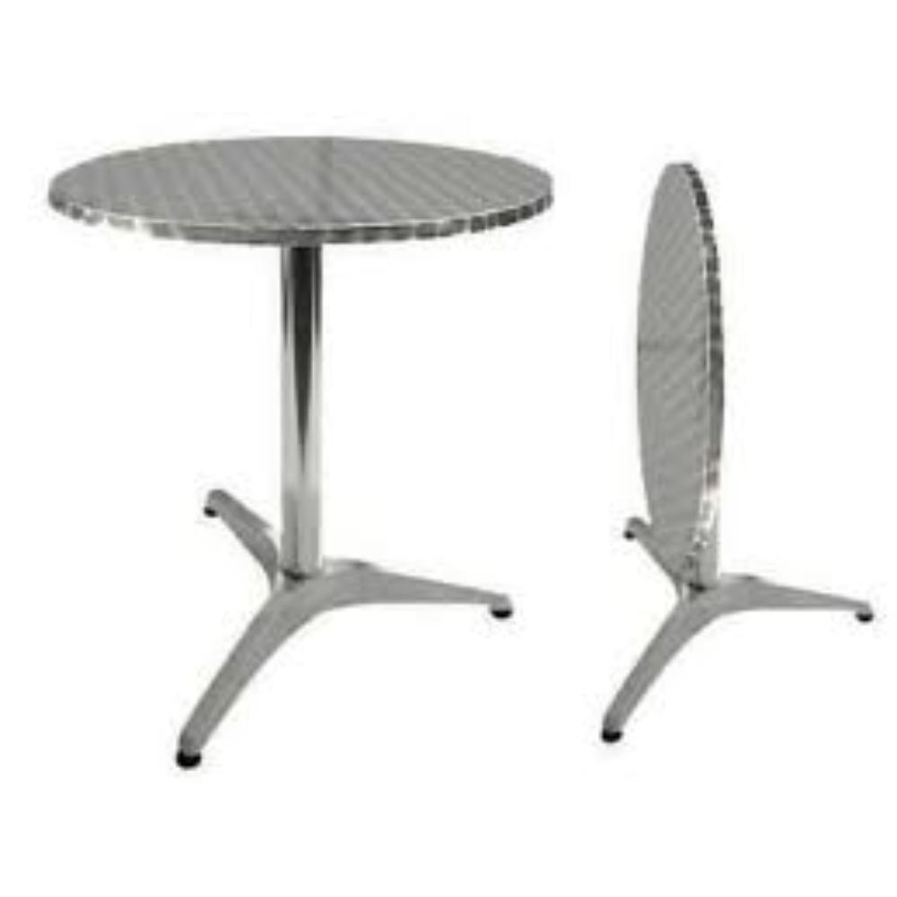 Round bar table with aluminum frame, reclining. Dimensions Ø 60x70(H) cm.