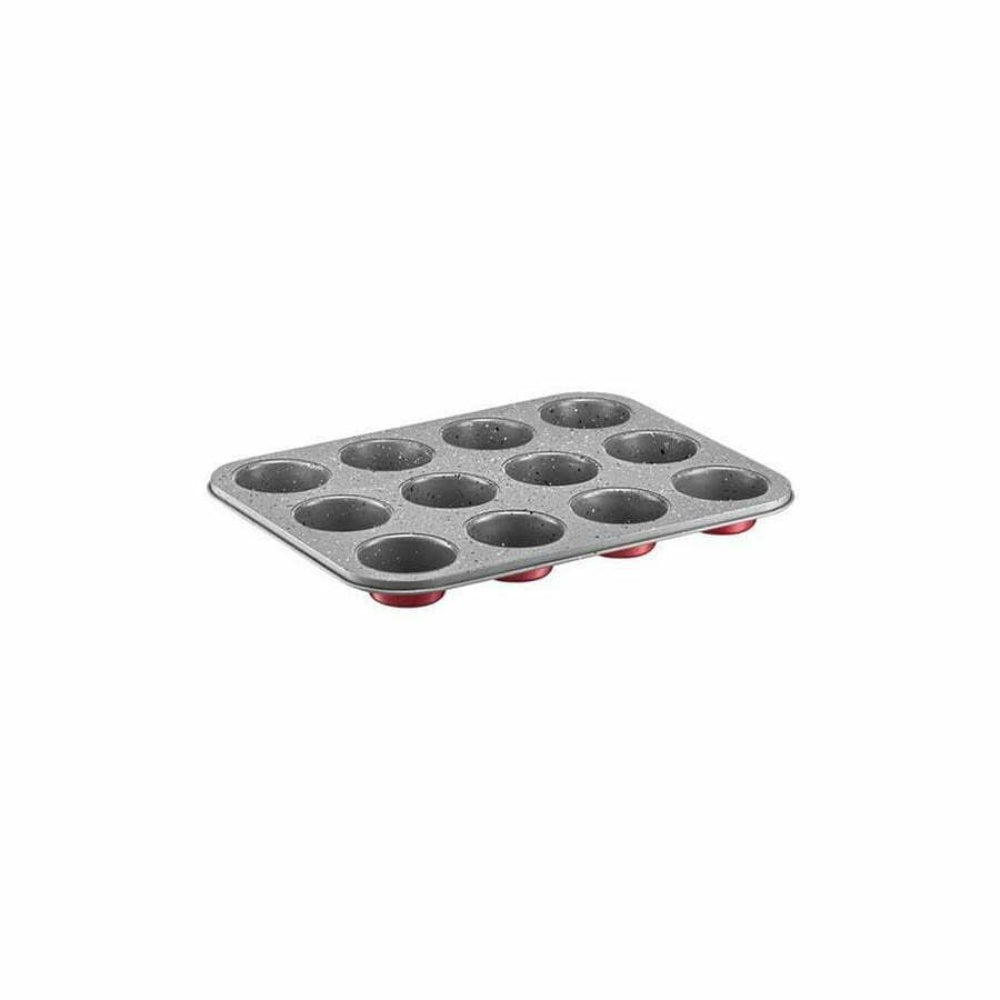 35 x 26 x 3 cm form from the Cherry collection for baking delicious muffins is an indispensable equipment in every kitchen. The unique baking mold with an unusual appearance is inspired by a natural stone. Its texture resembles granite, and it is made of carbon steel and covered inside with a non-stick coating with a unique appearance that perfectly imitates stone. The practical form will definitely make it easier to make perfect pastries. Intended for use in an oven up to + 230 ° C.