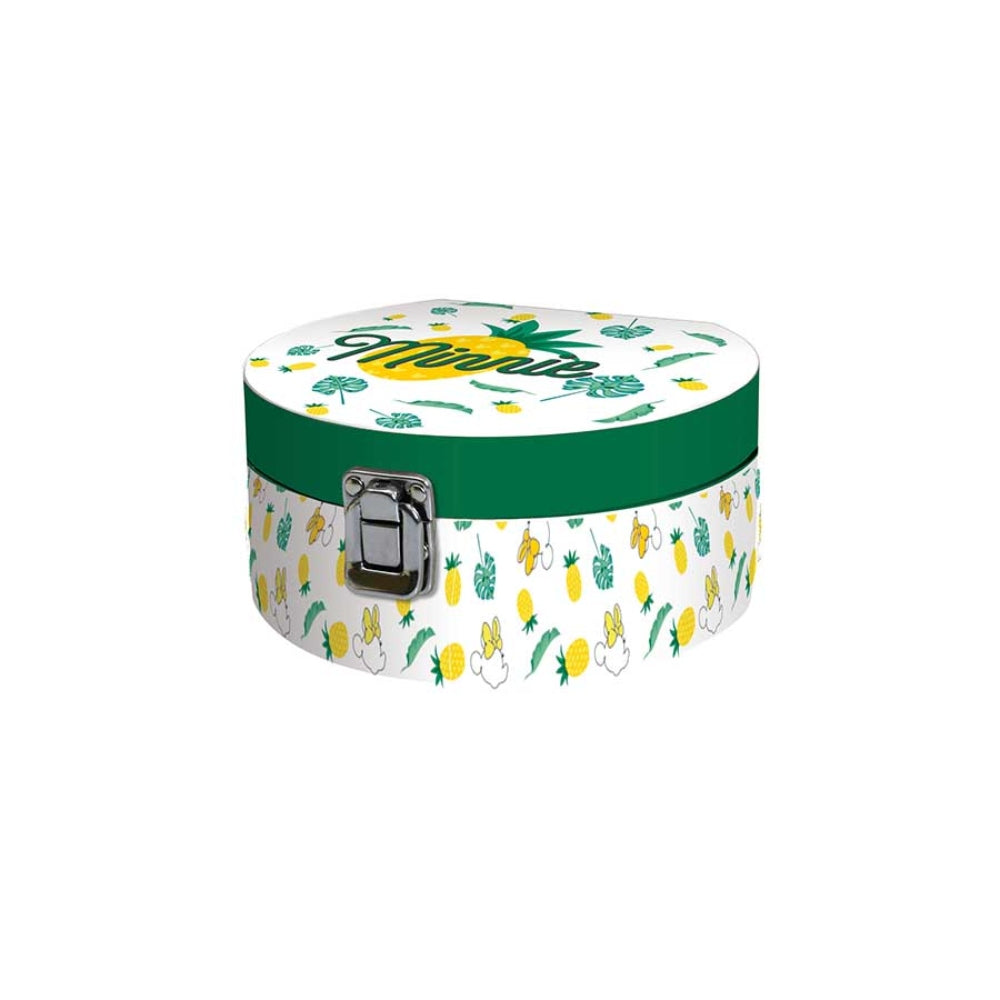 The Minnie Pineapple round box with a closing buckle is made of thick cardboard covered with a paper pattern. Inside there are compartments for small items and a mirror. The joyful combination of white, green and yellow is optimistic. On the lid of the box is the inscription Minnie and a pineapple drawing. A box from the Minnie collection is a great gift idea for both the youngest and slightly older. Minnie and Mickey have been friends of children and adults since 1928. Their adventures take us into the world of fantasy, where we can have fun, laugh and even learn