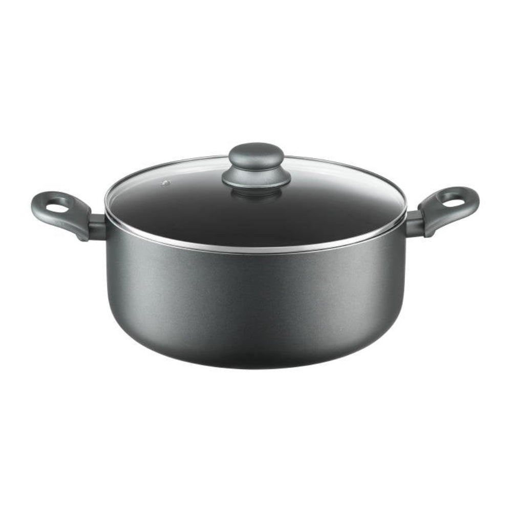 Graphite pot 28cm in diameter, with lid, made of aluminum. Inside covered with the original swiss coating ilag basic. It is a durable coating with very good non-stick properties and high scratch resistance. It has a thick induction bottom and soft touch handle. Suitable for use on all types of cookers, including induction cookers. The cover is made of 4mm thick tempered glass. Material: aluminium, glass, plastic Width: 42,5cm Height: 12cm. Diameter: 28cm. Capacity: 7,2L.