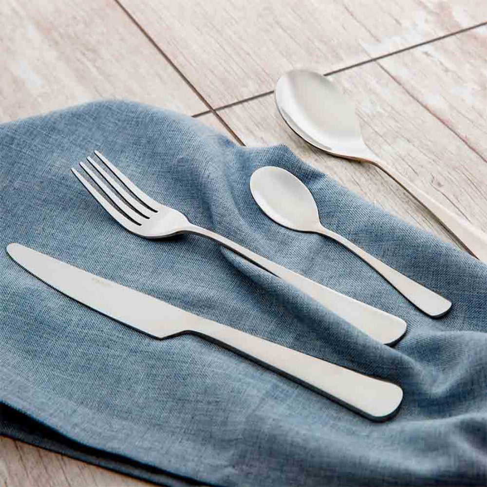Naples classic cutlery with a subtle linear motif. The light shapes of the Napoli collection make it the preferred choice for our customers. Made of excellent quality stainless steel. Set consisting of: 6 tablespoons, 19,6cm 6 forks, 19,2cm 6 knives, 21cm 6 teaspoons, 7cm