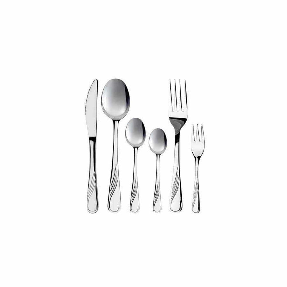 Naples Cutlery of a classic shape, decorated with the subtle motif of the line. Fragile design makes the Napoli series one of the most chosen by customers. Series of 36 Naples cutlery Cutlery in a classic shape, decorated with a subtle wave pattern. The offer also for restaurants and hotels. High quality stainless steel cutlery. Polishing the agave fiber makes the surface shiny Service of 36 pieces consisting of: 6 knives 6 forks 6 spoons 6 teaspoons 6 coffee spoons 6 dessert forks
