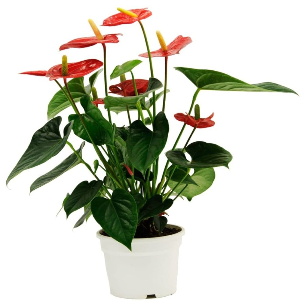 Anthurium plants, also known as flamingo flowers, are popular houseplants known for their vibrant and unique blooms. They feature glossy, heart-shaped leaves and striking blossoms that come in shades of red, pink, white, and purple. Anthuriums are low-maintenance plants that thrive in bright, indirect light and moist, well-draining soil. They are perfect for adding a pop of color to any indoor space and are also known for their air-purifying qualities. With the right care, Anthurium plants can bloom year-round, making them a beautiful and long-lasting addition to any home or office.