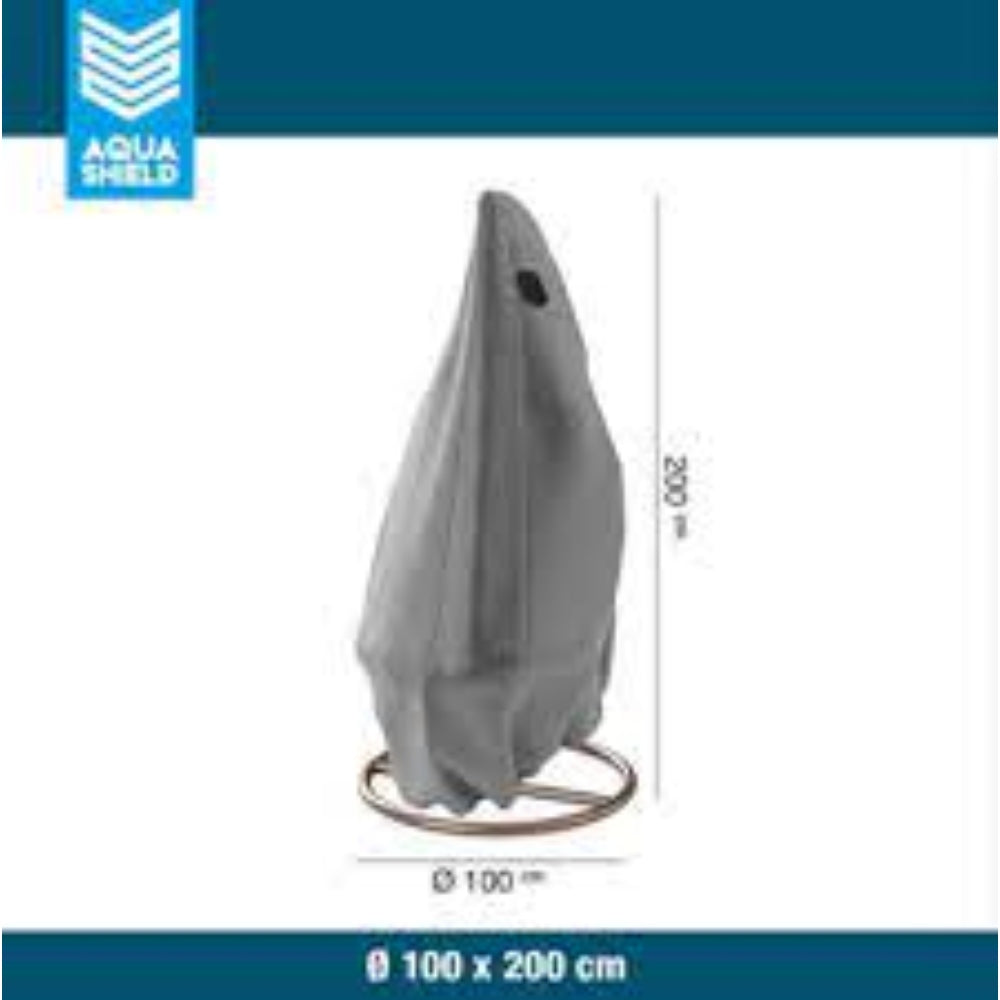 Hanging chair cover diameter100x200. Hanging chair cover from Aquashield. Lightweight hanging chair cover for round hanging chairs up to 100 cm. When covering for a long time, we recommend that you let damp furniture dry first. The cover protects your furniture, the cover itself can discolour over time. Covers are never 100 percent waterproof. Do not put cushions under the cover for a long time, but keep them indoors.