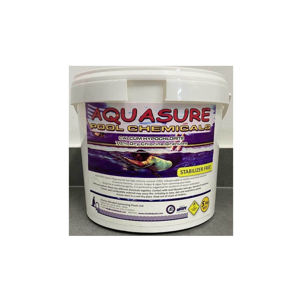 Melclorite Calcium Hypochlorite Tablets are a highly effective disinfectant that is commonly used to sanitize swimming pools, hot tubs, and other water systems. Each tablet contains a concentrated form of calcium hypochlorite, which rapidly dissolves in water to release chlorine gas and oxygen. This powerful combination effectively kills bacteria, viruses, and other harmful microorganisms to ensure clean and safe water. The tablets come in a convenient 5kg container, making it easy to store and use as needed. To use, simply add the recommended dosage of tablets to your water system and allow them to dissolve completely. It is important to follow the manufacturer's instructions for proper dosing and handling to ensure optimal results. Keep out of reach of children and pets. Store in a cool, dry place away from direct sunlight. Avoid contact with skin, eyes, or clothing. In case of accidental exposure, rinse thoroughly with water and seek medical attention if necessary. Ensure your water system remains clean and safe with Melclorite Calcium Hypochlorite Tablets.