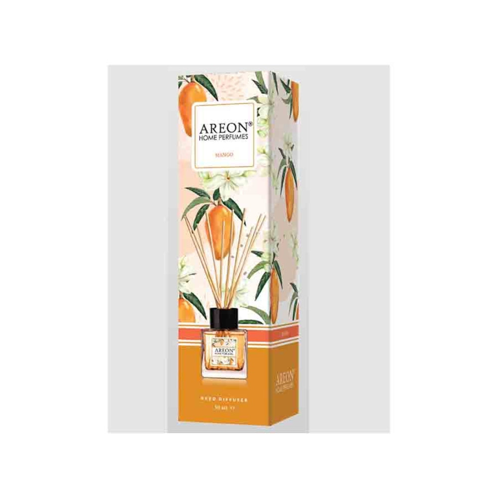 Areon Home Botanic liquid air freshener 50 ml. for home or office. In a bottle format with bamboo rods that are inserted into the floral perfume and spread the chosen aroma in the environment, creating a long-lasting relaxing and refreshing atmosphere in any room. Areon Home Botanic Mango 50ml is a product from Areon Home, it is a fragrance that contains 50ml of liquid. The fragrance is inspired by the botanic scent of Mango, a spice that is derived from the flower of the crocus plant. It is known for its rich, warm and spicy aroma. The scent of this product is designed to be long-lasting and it is perfect for use in the home, office or car. The bottle of this product is made of durable materials and has a sleek, modern design that complements any decor.