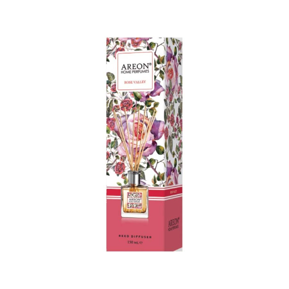 Areon Home Botanic liquid air freshener 50 ml. for home or office. In a bottle format with bamboo rods that are inserted into the floral perfume and spread the chosen aroma in the environment, creating a long-lasting relaxing and refreshing atmosphere in any room. Areon Home Botanic Rosa Valley 150ml is a product from Areon Home, it is a fragrance that contains 150ml of liquid. The fragrance is inspired by the botanic scent of Rosa Valley, a spice that is derived from the flower of the crocus plant. It is known for its rich, warm and spicy aroma. The scent of this product is designed to be long-lasting and it is perfect for use in the home, office or car. The bottle of this product is made of durable materials and has a sleek, modern design that complements any decor.