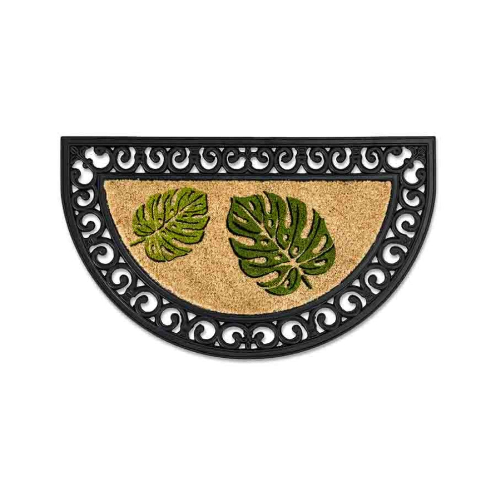 Doormat halfround coco relief 45cm x 75cm Monstera leaves