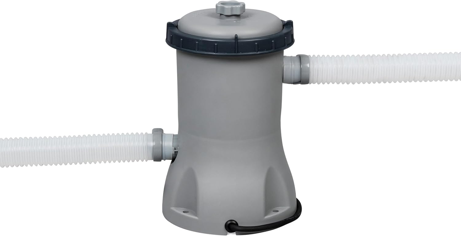 This Bestway® pool filter pump can help keep your paddling pool clean and clear of debris. Filter cartridge pumps are an economical and convenient way to keep your pool water clean and are so simple to set up. The 800gal Flowclear™ Filter Pump comes with a 4.2in x 5.4in filter cartridge that can be simply and easily replaced. Even if you’re using your swimming pool every day, a cartridge will last a minimum of two weeks, and much longer if you keep your pool covered and protected. Once the pump is connected to the pool and the filter system, the pump can push through 580gal of water per hour (2,195L/hr system flow rate). This integrated system flow rate makes the 800gal pump perfect for Bestway® pools with a volume of 1,100L – 17,400L such as large Steel Frame, Hydrium and Fast Set™ Pools.