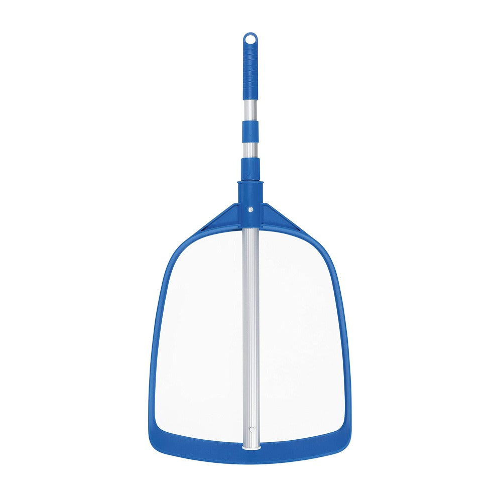 Features: Length: 163 cm / 64". Skimmer attachment with robust net. Thanks to its shape, it can also reach hard-to-reach corners. Quickly and easily removes dirt from the water surface. Lightweight, extendable, 3-part telescopic handle made of aluminum. Handle fits the simple Transport and space-saving storage in the net. Compatible with pools up to 305 cm in diameter.
