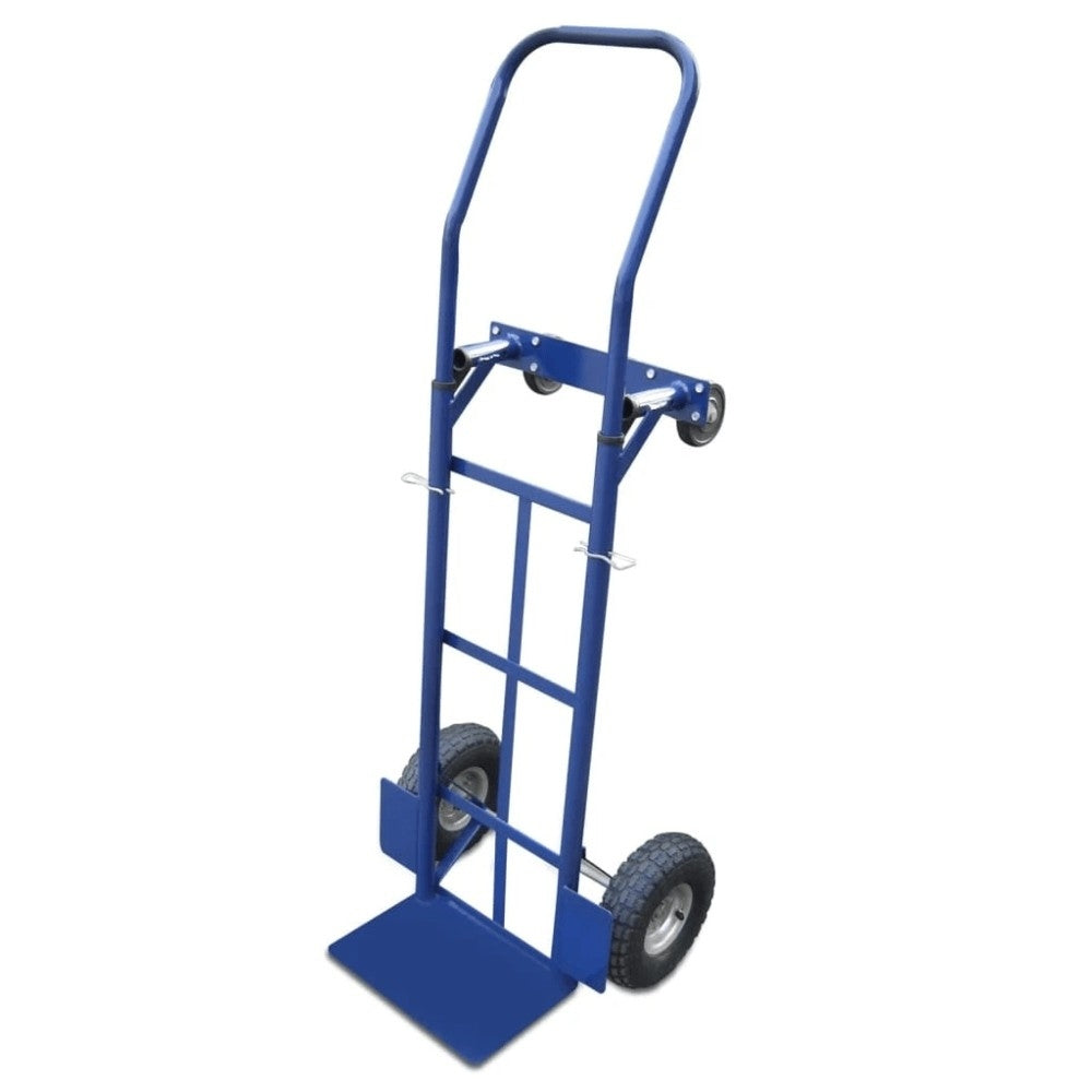 The BRICK hand truck is perfect for all moving, delivery and loading jobs. The cart is ideal for transporting packages or luggage. It is easy to maneuver thanks to the inflatable rubber tires. This universal hand truck is also useful for the garage or workshop. But also on the construction site due to its impressive load capacity of 350 kg! Color blue Material: plastic and metal Total dimensions: 95 x 35 x 130 cm (W x D x H) Platform dimensions: 24 x 35 cm (W x L) Load capacity: 350 kg 2 x 24 cm fixed, inflatable wheel 2 small plastic castors Net weight: 15 kg