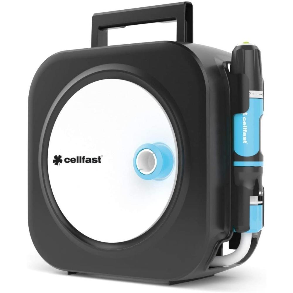 Hose reel ERGO XS™ compact, lightweight and durable folding handle ensures convenient transportation profiled rotation crank handle facilitates winding the hose holders for sprinklers and connectors situated on both sides of the reel hanger included in the set, it enables hanging the reel on a wall dimensions: 315 × 160 × 260 mm The set includes: Hose reel ERGO XS™ Garden hose 3/8” 10 m Adjustable hose nozzle ERGO™ Hose quick connector - water flow ERGO™ 3/8" Hose quick connector - stop ERGO™ 3/8" Multi-purpose connector with a female thread ERGO™ G1/2" - G3/4" - G1" Connection set 2 m Wall hanger