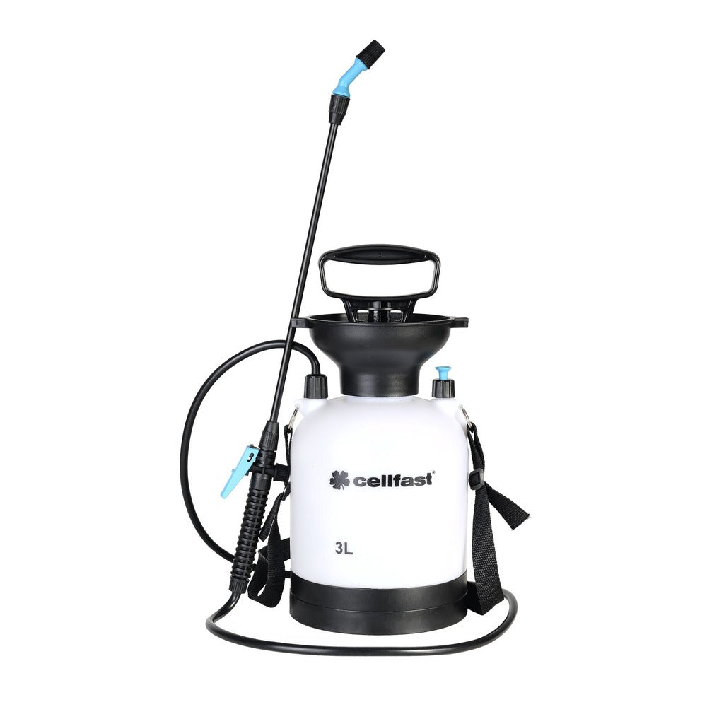Pressure sprayer 3 l intended for sprinkling and care with liquid fertilizers and plant protection products wide funnel minimizes the risk of spillage when pouring liquid into the tank The ergonomic handle does not require much force, and the capacity of the sprayer ensures that many plants are hydrated semi-transparent tank makes it easy to observe the liquid level adjustable nozzle allows you to adjust the spray to your needs additional telescopic lance (39cm->66cm) enabling work in places inaccessible to traditional sprayers capacity: 3 l