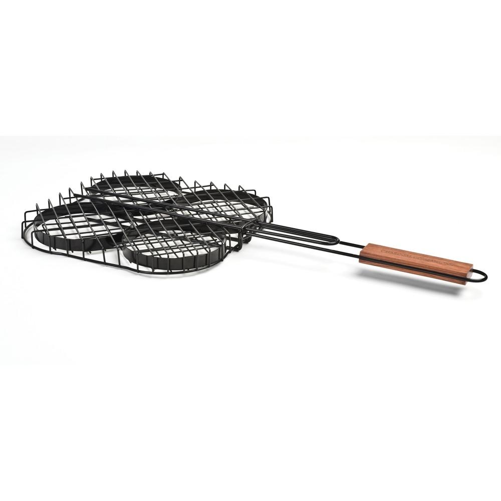 Delicious grill basket for grilling four burger patties at once. Then you have control of your steaks while they are grilled. Present your burgers in style with this smart burger stand for grilling. The holder provides a stable grip on your burgers, so they stay in place while you grill them perfectly. Perfect for barbecues and simple serving.
