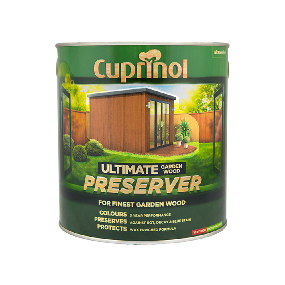 Cuprinol Ultimate Garden Wood Preserver has a superior formulation that works in 3 ways: UV filters give long lasting colours for up to 5 years, added waxes & resins provide advanced weather protection and active ingredients penetrate deep into the wood top protect against rot, decay and blue stain. It can be used on all types of rough or planed wood such as sheds, fences, summerhouses, gates and arbours. Features: 5 year performance. Preserves against rot, decay and blue stain. Protects with its wax enriched formula.