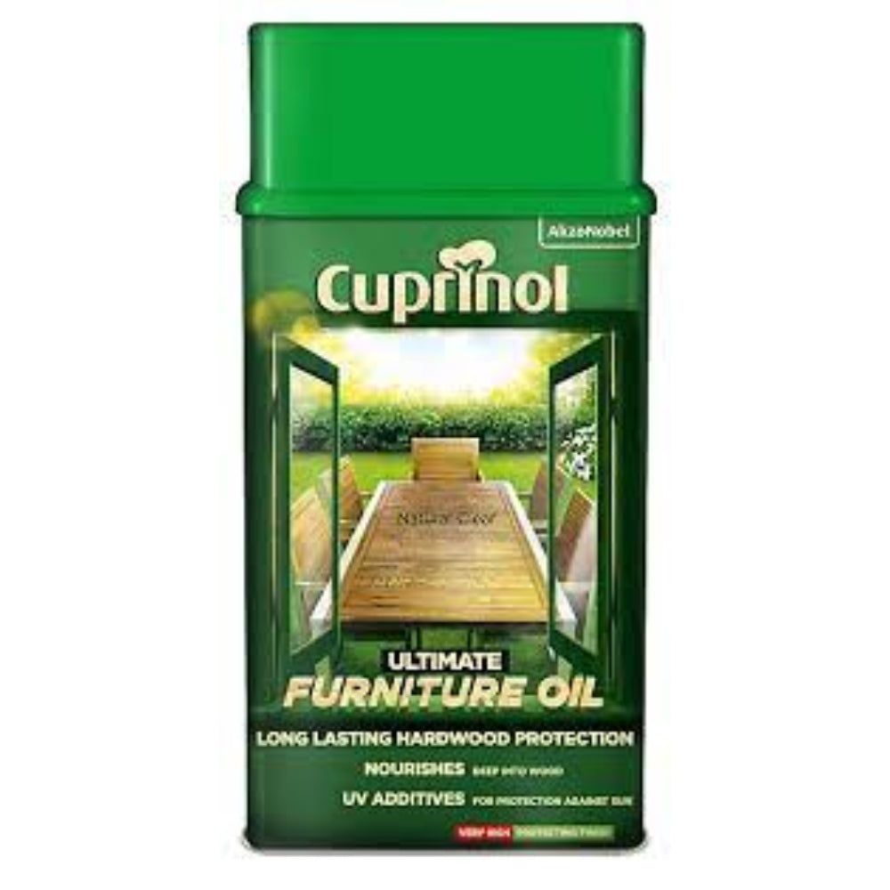 You can apply this furniture oil from the Cuprinol Ultimate range to , using a brush or rag, to provide protection. It takes 24 hours to dry and will cover up to 24m2 per litre on average Replaces the natural oils lost through weathering Coverage: 24m2 Drying time: 24 hours Features and benefits Waxes increase the water repellency of the wood protecting it from the weather Oils penetrate to replace the natural oils lost through weathering The natural clear or lightly tinted colours enhance the grain pattern and appearance 500ml covers up to 12m2 in 1 coat