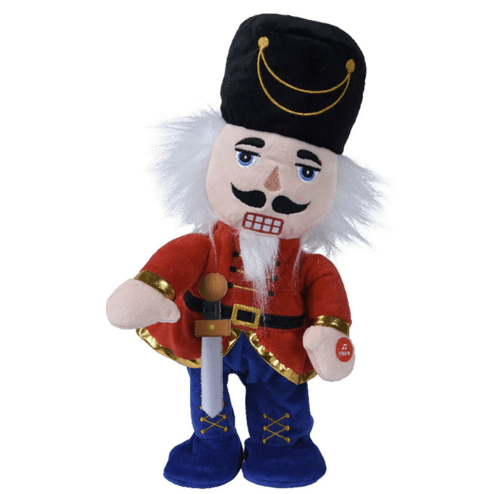 This 38cm Animated Nutcracker is the perfect joyful addition to your holiday display. His sword and hat add a classic, festive touch, and he sings "Jingle Bells" for a delightful surprise. Create an extraordinary atmosphere with this animated masterpiece! Make this Christmas a magical one with Seasons! Key Features Size: 38cm. Colour: Red and Blue.