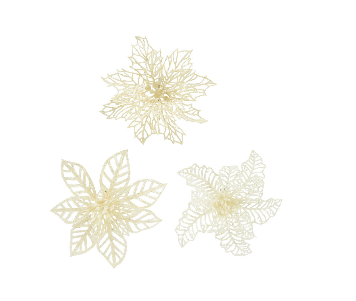 The Decoris Clip-On Plastic Flower with Glitter Set includes two beautifully crafted flowers in a vibrant White color, perfect for adding a festive touch to your holiday decor. The flowers are adorned with glitter, giving them a sparkling effect that enhances their visual appeal. They are designed with a clip-on feature, making them easy to attach to wreaths, trees, or other decorations. This set comes in assorted styles, allowing for variety in your festive arrangements. Ideal for both indoor and outdoor use, these flowers can help bring your Christmas celebrations to life.