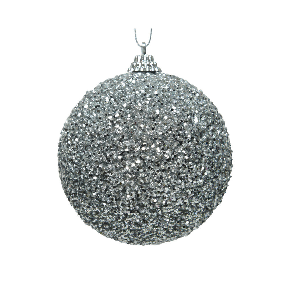 Foam bauble in silver with beads, 8cm.