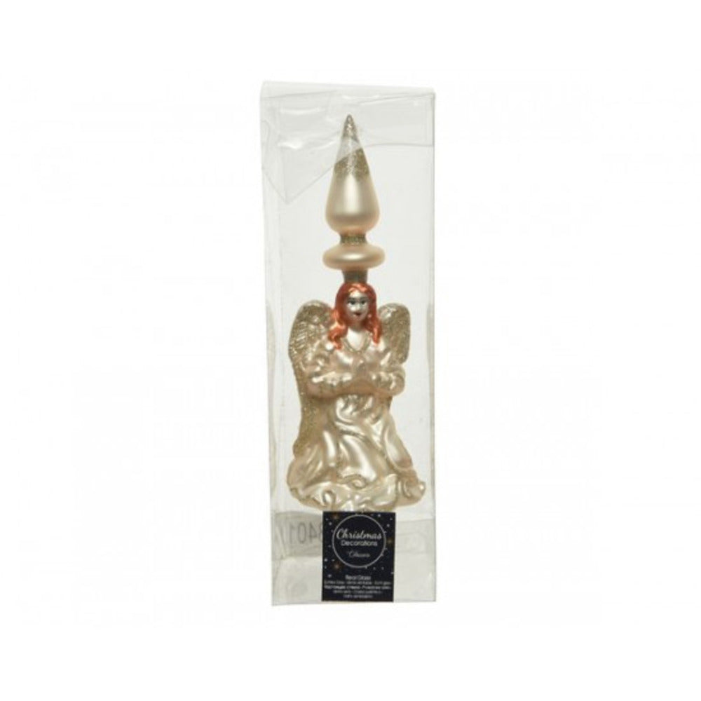 Add a touch of elegance to your Christmas tree with the Decoris Glass Angel Tree Topper. This beautiful 27cm tree topper features a shimmering pearl finish that will sparkle and shine among your holiday decorations. The angel design adds a classic and timeless touch to your tree, making it the perfect finishing touch for your holiday decor. Made from high-quality glass, this tree topper is durable and sturdy, ensuring that it will be a cherished piece for years to come. Upgrade your Christmas tree this year with the Decoris Glass Angel Tree Topper.