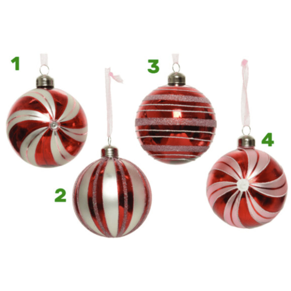 Add a touch of festive charm to your holiday decor with these Decoris Glass Baubles with Candy Stripes. Each bauble measures 8cm in diameter and comes in 4 assorted designs, featuring vibrant candy stripes in red and white. Hang them on your Christmas tree, wreaths, or garlands to create a whimsical and colourful display. These glass baubles are sure to bring joy and cheer to your home this holiday season.