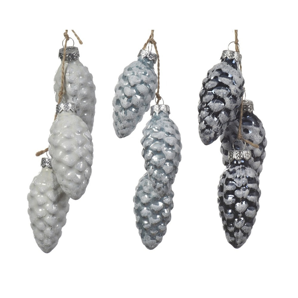 Decoris Glass Pinecone Assorted Bring a touch of elegance and charm to your Christmas tree with the Decoris Glass Pinecone Assorted. Perfect for adding a festive sparkle, these glass pinecones are crafted to resemble the natural beauty of real pinecones, making them a unique addition to your holiday décor. - Assorted colours for a festive and vibrant look - Glass material for a delicate and elegant touch - Height: 6 cm; Diameter: 3 cm - Silver cap adds a touch of sophistication - Easy to hang with natural ribbon hanger Ideal for creating a winter wonderland theme, these pinecones add texture and depth to your tree decoration. Their compact size and chic design make them versatile, allowing you to mix and match with other ornaments or use them as standalone decorations. Bring the beauty of nature into your home this holiday season with these exquisite glass decorations.