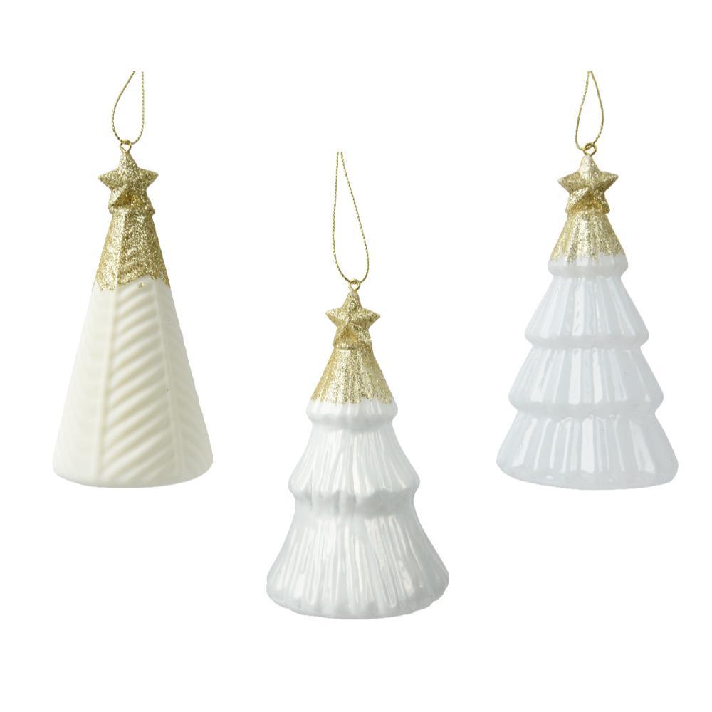 Decoris Glass Tree Wool White Transform your Christmas tree into a winter wonderland with the Decoris Glass Tree in elegant wool white. Perfectly designed to bring a touch of sophistication to your festive décor, this charming ornament stands at 12.6 cm tall with a diameter of 6.7 cm, making it a striking addition to your holiday collection. - Made from premium glass material - Height: 12.6 cm - Diameter: 6.7 cm - Features a beautiful star on top decorated with gold glitter - Gold wire for easily hanging amidst branches - Cap colour: Gold This exquisite ornament isn't just a decoration; it's a centrepiece, drawing eyes with its classy gold glitter and warm white shade. Whether your decorations are minimalistic or extravagant, this glass tree will bring them all together, creating a seamless, elegant atmosphere in your home. Easy to hang and crafted with attention to detail, it’s the perfect finishing touch for your tree this Christmas. Dive into the holiday spirit with style and grace!