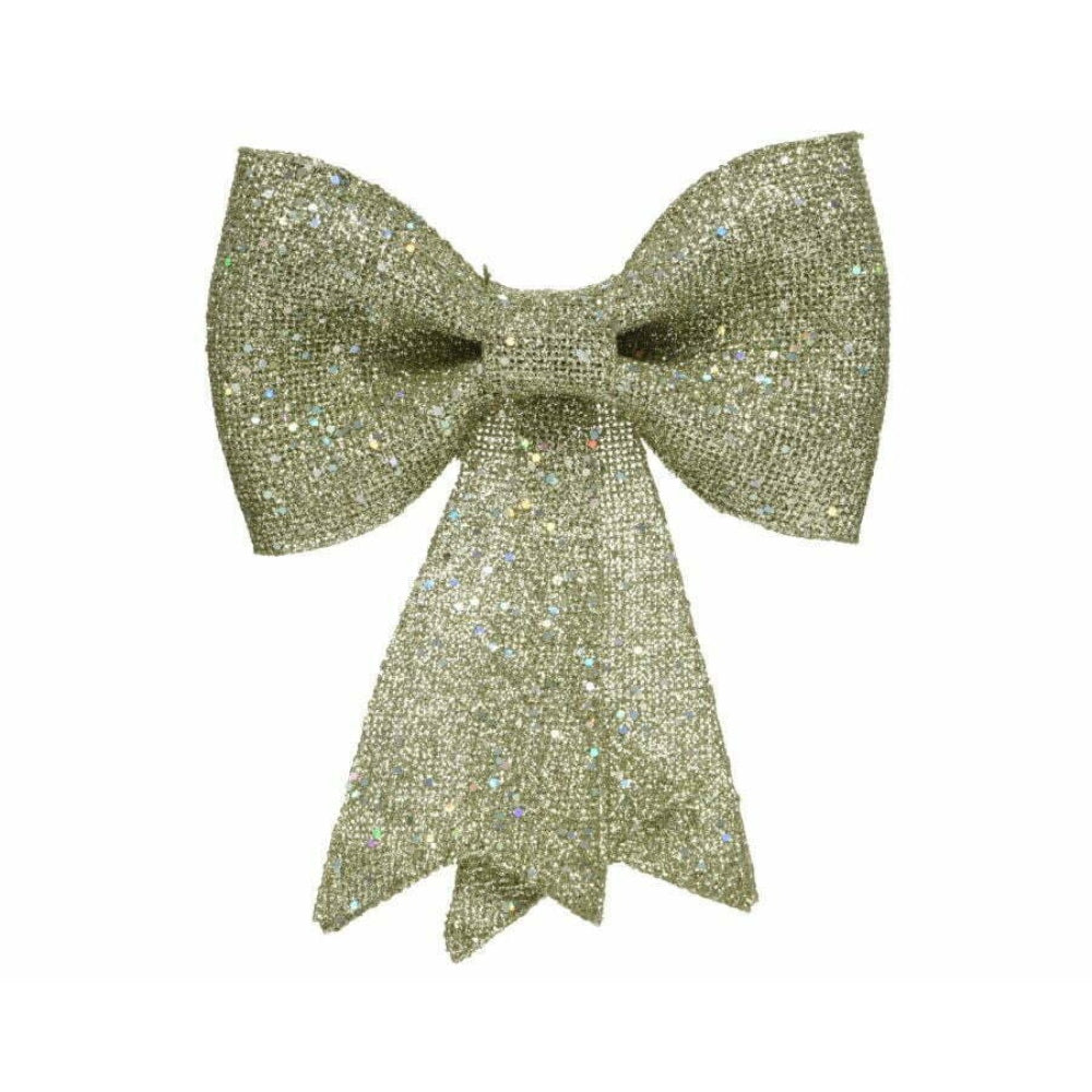 Decoris Bow Light Gold Get ready to elevate your holiday decor with the Decoris Bow in a stunning light gold shade. Perfect for adding a touch of elegance to your Christmas tree, wreath, or gift packages, this bow is both stylish and versatile. - Dimensions: 5 cm (Length) x 22 cm (Width) x 30 cm (Height) - Made from durable plastic - decorated with shimmering glitters for an added festive touch - Hanging made easy with a fishing wire hanger The light gold colour of this bow ensures a subtle and sophisticated sparkle that complements any holiday theme. Measuring an impressive 30 cm in height, it makes a noticeable statement wherever it's placed. Crafted from sturdy plastic, it's built to last through the holiday season. Whether used indoors or outdoors, this beautiful bow is designed to spread Christmas cheer effortlessly. Add the Decoris Bow to your festive collection and enjoy the magical ambiance it creates in your holiday space.