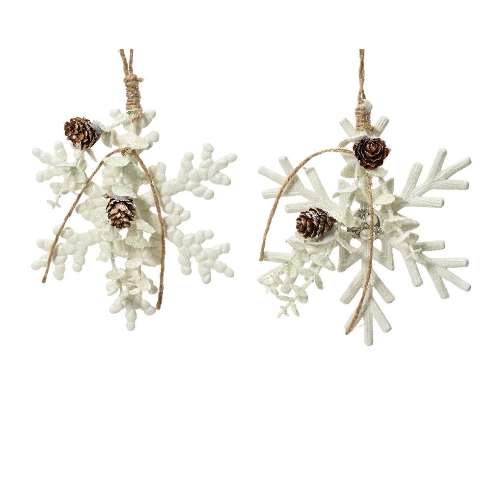 The Decoris Hanging Plastic Snowflake with Beads and Pinecones is a charming holiday decoration ideal for adding a touch of winter wonder to your festive decor. Measuring 15cm, this decorative piece comes in two assorted styles. The snowflake design is crafted from durable plastic, making it suitable for both indoor and outdoor use. Each ornament is embellished with intricately crafted beads and natural-looking pinecones, enhancing its overall aesthetic and giving it a rustic, seasonal feel. These hanging snowflakes can be easily displayed on Christmas trees, in windows, or as part of a festive table centerpiece. Whether used individually or grouped together, they bring a festive spirit and can complement a variety of holiday themes.