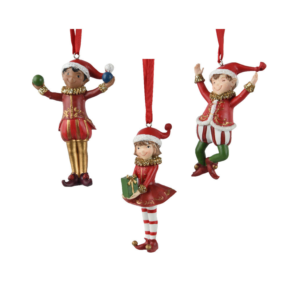 The Decoris Hanging Polyresin Elf comes in a variety of three assorted designs, each standing at 10cm tall. Crafted from durable polyresin, these charming decorative elves are perfect for adding a festive touch to your home decor during the holiday season. They can be hung on Christmas trees, garlands, or around the house to enhance the holiday atmosphere. Each elf features unique colors and details, making them delightful collectibles. Ideal for both personal use and as gifts, these elves are a whimsical addition to any festive decor.