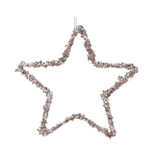 Decoris Hanging Star Iron Champagne Elevate your Christmas tree decor with the stunning Decoris Hanging Star. Designed for those who appreciate a touch of elegance, this champagne-colored star adds a shimmering glow to your festive setup. - Made of sturdy iron for durability - Dimensions: 15 cm in length and width, 0.5 cm in height - Eye-catching champagne colour in the orange colour group - Finished with glitter for extra sparkle - Embellished with dazzling spangles - Perfect for hanging on your Christmas tree This charming star is crafted to bring a magical and festive atmosphere to your home. Its shimmering glitter finish and spangle embellishments ensure it stands out among your decorations, creating a warm ambiance. Easy to hang, it's a quick way to infuse elegance and joy into your holiday celebrations. Make your tree the centrepiece of festive cheer with the Decoris Hanging Star.