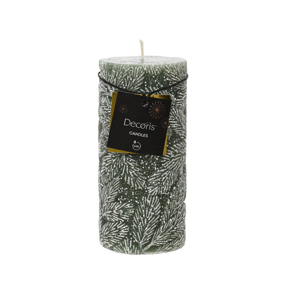 Decoris Pillar Candle Rosemary Green Add a touch of elegance to your Christmas setup with the Decoris pillar candle in a stunning rosemary green. Perfect for indoor settings, this candle is designed to enhance your festive atmosphere with its calming shade and beautiful leaf relief decoration. Key Features: - Handcrafted for a unique and personal touch - Made from high-quality paraffin material - Impressive height of 15 cm and a diameter of 7 cm - Rich snow-finished texture for a festive flair - Provides a wonderful 64 hours of burning time, ensuring lasting enjoyment Whether you're looking to elevate your holiday table or simply create a cozy ambiance by the fireplace, this pillar candle is an essential addition to your Christmas décor. Its soothing colour and intricate detailing make it a standout piece, while its handmade quality guarantees each candle is one-of-a-kind. Celebrate the season with Decoris and let this rosemary green beauty light up your festive moments.
