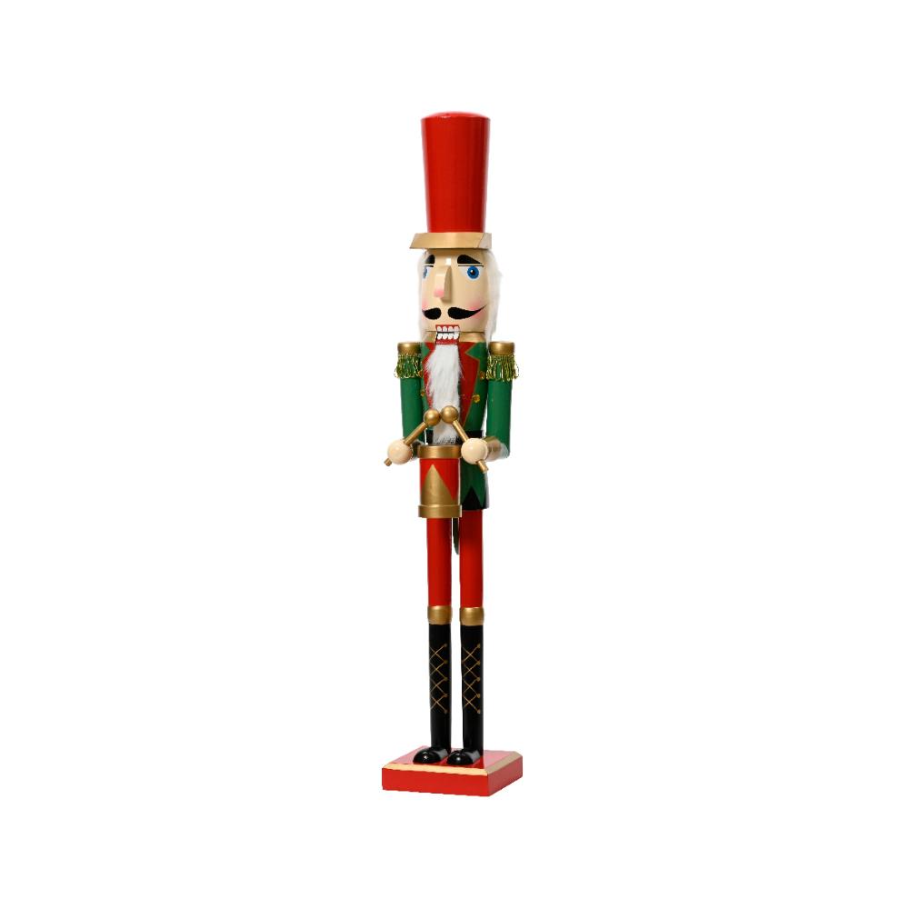 Decoris Nutcracker Bring a touch of tradition to your holiday decor with this classic Decoris Nutcracker in vibrant red. Standing an impressive 76 cm tall, it is an eye-catching piece that adds festive charm to any room. Crafted from durable pinewood, this nutcracker is not only a striking decoration but also a symbol of Christmas joy. - colour: Bright red to enhance your festive decor - Material: Made from sturdy pinewood for durability - Dimensions: Length 13 cm, Width 11 cm, Height 76 cm for a prominent presence - Decoration: Comes with a charming drum detail - Ideal for indoor use only Easy to place in your living room or by the fireplace, this nutcracker is sure to be a talking point among guests. Its bold design and traditional elements will help you capture the spirit of the season effortlessly. Add this timeless piece to your collection and let it contribute to the magical holiday atmosphere of your home.
