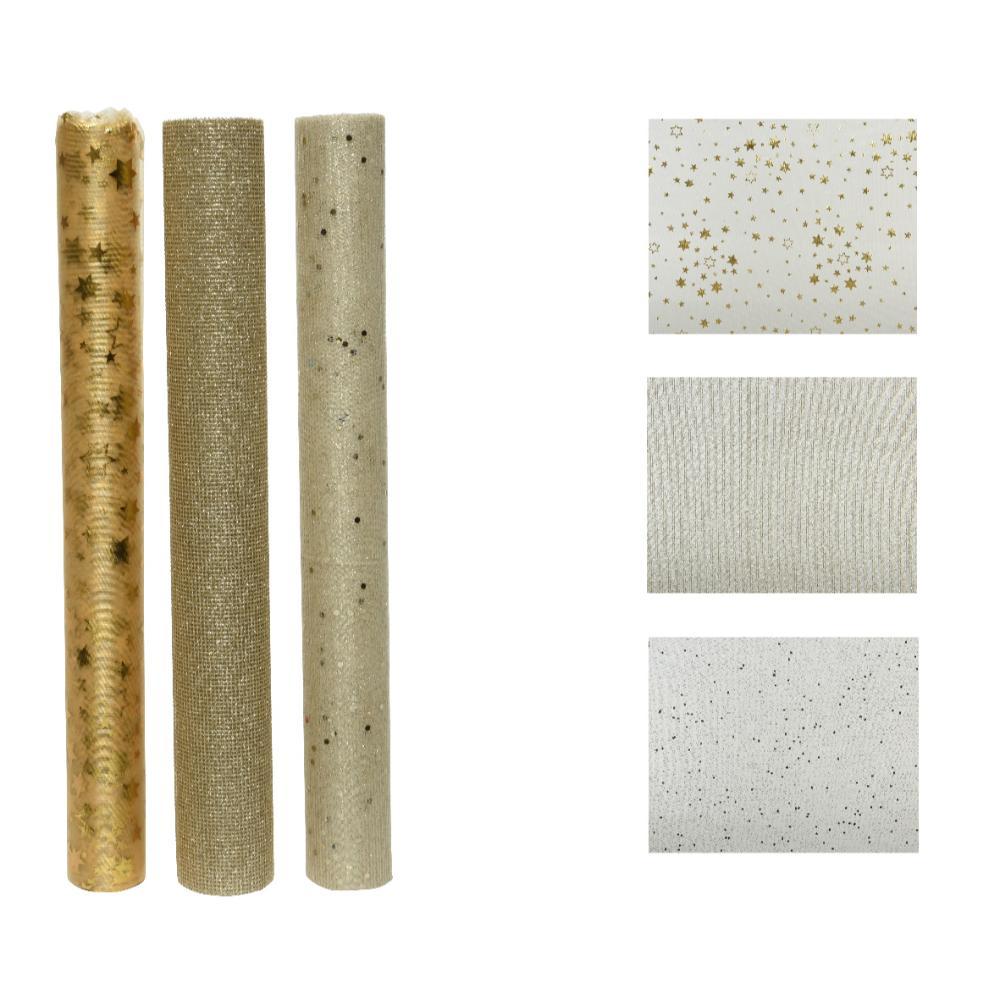 Decoris Deco Fabric Champagne Looking to add a touch of elegance to your Christmas table setting? Meet the Decoris Deco Fabric in a stunning champagne shade. Perfect for all your indoor festive set-ups, this stunning fabric is made from high-quality polyester and features a luxurious glitter and foil print, making it an eye-catching centrepiece for any occasion. - colour: Champagne with an elegant glitter and foil finish - Material: Durable polyester fabric - Length: 200 cm - Width: 35 cm - Height: 0.01 cm, for a sleek and subtle table display - Suitable for indoor use Dress your table in style with this chic decorative fabric that effortlessly elevates your seasonal decor. It’s the perfect way to bring warmth and sophistication to your Christmas gatherings. Easy to incorporate with your existing holiday decorations, this deco fabric will no doubt impress your guests and make your celebration truly unforgettable!