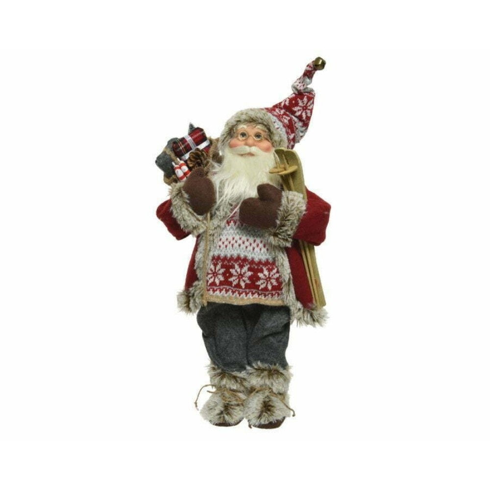 Add a touch of festive cheer to your holiday decor with the Decoris Multicolored Santa with Skis and Pinecone Indoor Christmas Decor, standing at 12 inches tall. This delightful decoration features a jolly Santa Claus figure equipped with skis and carrying a charming pinecone bundle. Its vibrant, multicolored design and intricate detailing will instantly brighten up your home, making it a perfect addition to your Christmas decorations this season.
