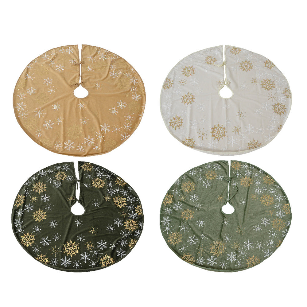The Decoris Polyester Tree Skirt with Snowflake Print is a festive decoration designed to enhance the appearance of your Christmas tree. Here’s some information about it: Product Features: Material: Made from durable polyester, this tree skirt is designed to withstand the holiday season's wear and tear. Design: It features a charming snowflake print, which adds a wintry touch and complements various Christmas themes. Size: The skirt has a diameter of 100cm, making it a suitable size for a variety of tree heights. Colors: It comes in four assorted colors, allowing you to choose one that matches your holiday decor. Functionality: Besides its decorative appeal, the tree skirt also serves to catch fallen pine needles or debris from the tree and can be a lovely place to display gifts underneath the tree.