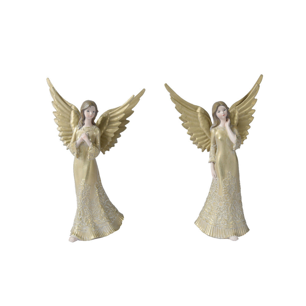 Bring a touch of serenity and elegance to your home with these stunning Decoris Polyresin Angels. Each angel is delicately crafted with metal wings and stands at a height of 30cm. Available in two assorted designs, these angels make a beautiful addition to any room and can be displayed on shelves, mantels, or side tables. Perfect for adding a touch of charm to your home decor or as a thoughtful gift for a loved one.