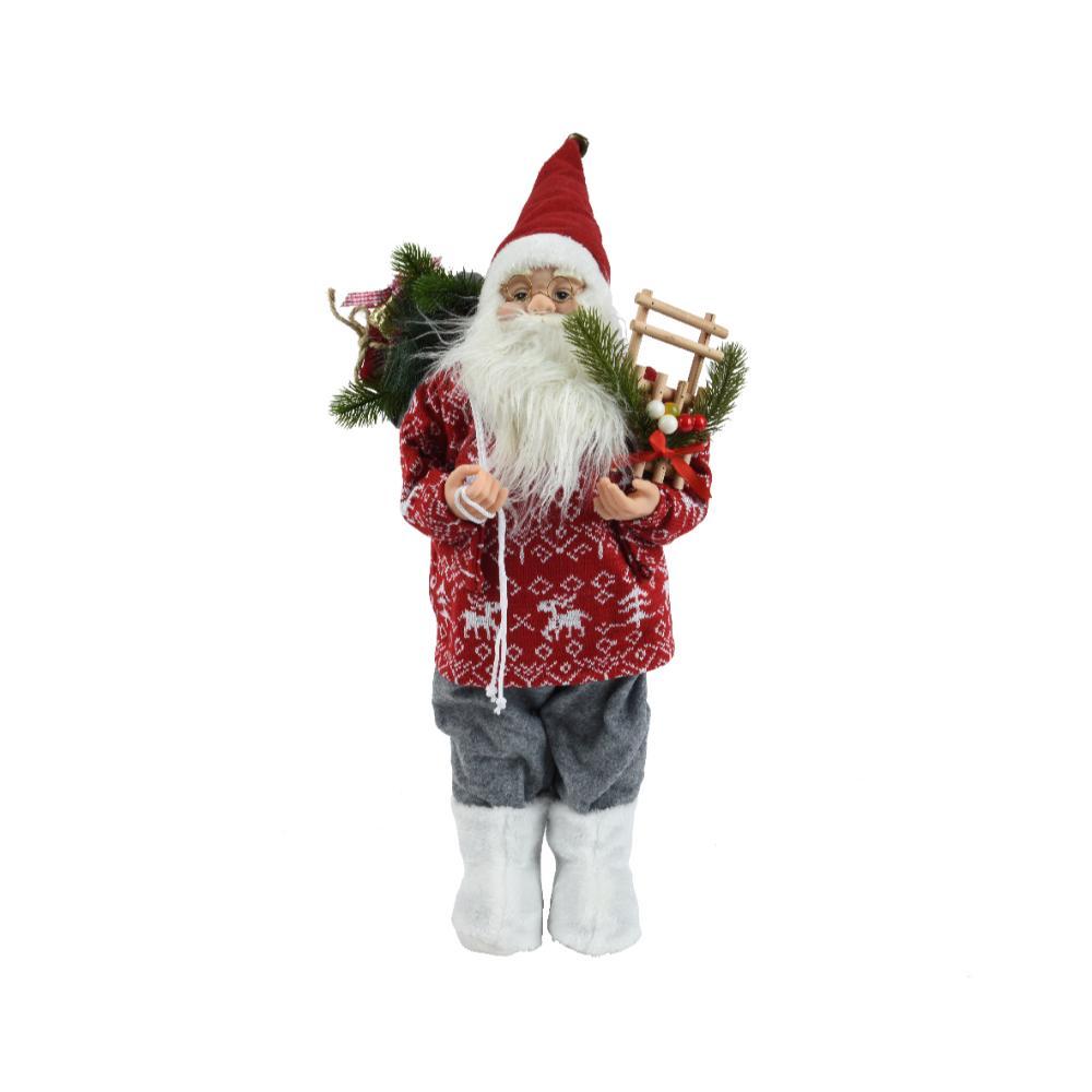 Decoris Santa Red Figure Looking to bring some festive cheer to your home this holiday season? The Decoris Santa Red Figure is the perfect addition to your Christmas decor. - Designed for any living area - Dimensions: 26 cm in length, 18 cm in width, and 60 cm in height - Made from high-quality polyester - Details include a jolly Santa with glasses, a red sweater, pants, and a traditional Christmas hat - Features a wooden sleigh with a branch, berries, and a bow - Santa holds a present wrapped with a green branch and a gift bag Simple to set up, this charming figure instantly radiates a cozy Christmas vibe in any room. Celebrate the spirit of the season with this delightful Santa figure, making every day feel like a festive occasion.