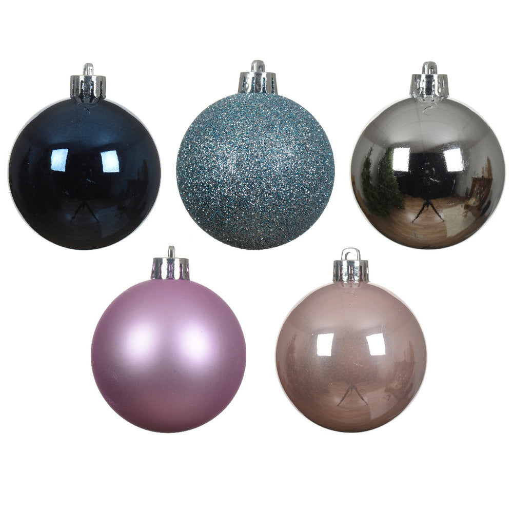 Brighten up your decorations with these 30 premium quality 60mm shatterproof baubles. This pack has 18 baubles with matte finish and 12 baubles with shiny finish. They're shatterproof, so you won't have to worry about any accidental breakages. Key Features: Size - 60mm. Shatterproof. 6 x Glittery Light Blue, 6 x Shiny Night Blue. 6 x Shiny Silver, 6 x Matte Lilac and 6 x Matte Blush Pink.